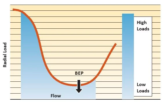 Z powodu zmian i odchyleń procesu większość pomp procesowych pracuje poza BEP, gdzie obciążenia promieniowe powodują duże naprężenia.