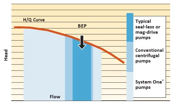 Pompy System One® oferują najszersze okno operacyjne poza BEP spośród wszystkich standardowych pomp procesowych.
